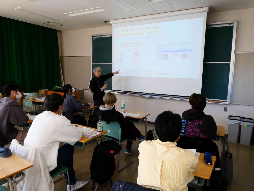 令和7年11月26日(水)に第5学年産業倫理の講義の一環として、日本弁理士会東海会教育機関支援機構の丸山明夫弁理士に、知的財産権セミナーを実施していただきました!