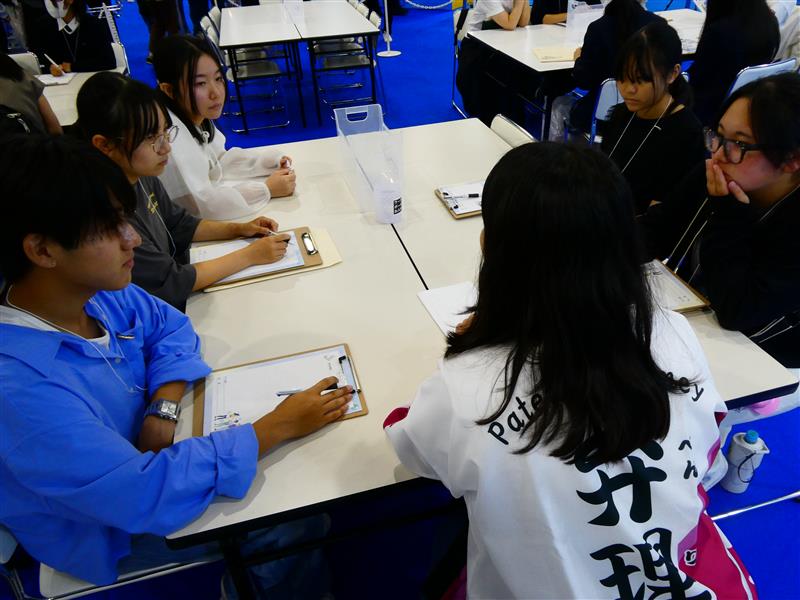 令和7年10月4日(土)に大阪・関西万博会場内のEXPOメッセ「WASSE」で開催された、日本弁理士会主催の「ビジネス/アイデア技術コンテスト」技術体験会に、本校環境都市工学科の学生3名、豊田市立稲武中の生徒2名が参加しました。日本弁理士会主催のコンテストに高専生・中学生の有志でチームを構成して出場します。技術体験会では、最新のXR技術を用いた製品・技術などを体験し、その特徴などを学びました。後半には弁理士の方を交えてワークショップを実施し、今後どのようなビジネス・アイデアにXR技術などが活用できそうか、検討しました。