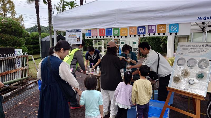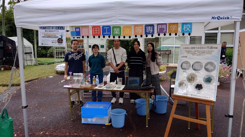 令和7年10月26日(日)に動物愛護センター敷地内で開催された豊田市防災イベント「あなたの避難生活,大丈夫?」に田中研の学生5名が参加しました!「災害時に使用できる水のろ過実験」,「災害現場の3Dスキャナ等による測量方法と洪水氾濫解析の紹介」について出展しました。来場者数が150名を超え,豊田高専の防災活動についてPRできるとともに,学生の防災減災スキルの向上にも繋がる貴重な機会となりました!
