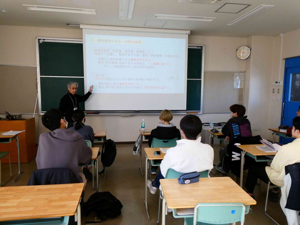 令和7年11月26日(水)に第5学年産業倫理の講義の一環として、日本弁理士会東海会教育機関支援機構の丸山明夫弁理士に、知的財産権セミナーを実施していただきました!