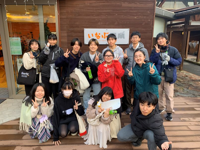 2025年12月14日(日)に道の駅「どんぐりの里いなぶ」に隣接する稲武まちづくり協議会の活動拠点である「どんぐりテーマ館(通称いなぶラボ)」で、本校環境都市工学科の学生11名、稲武中の生徒2名、地域住民の方々、総勢20名程度でまちづくり活動に取り組みました。